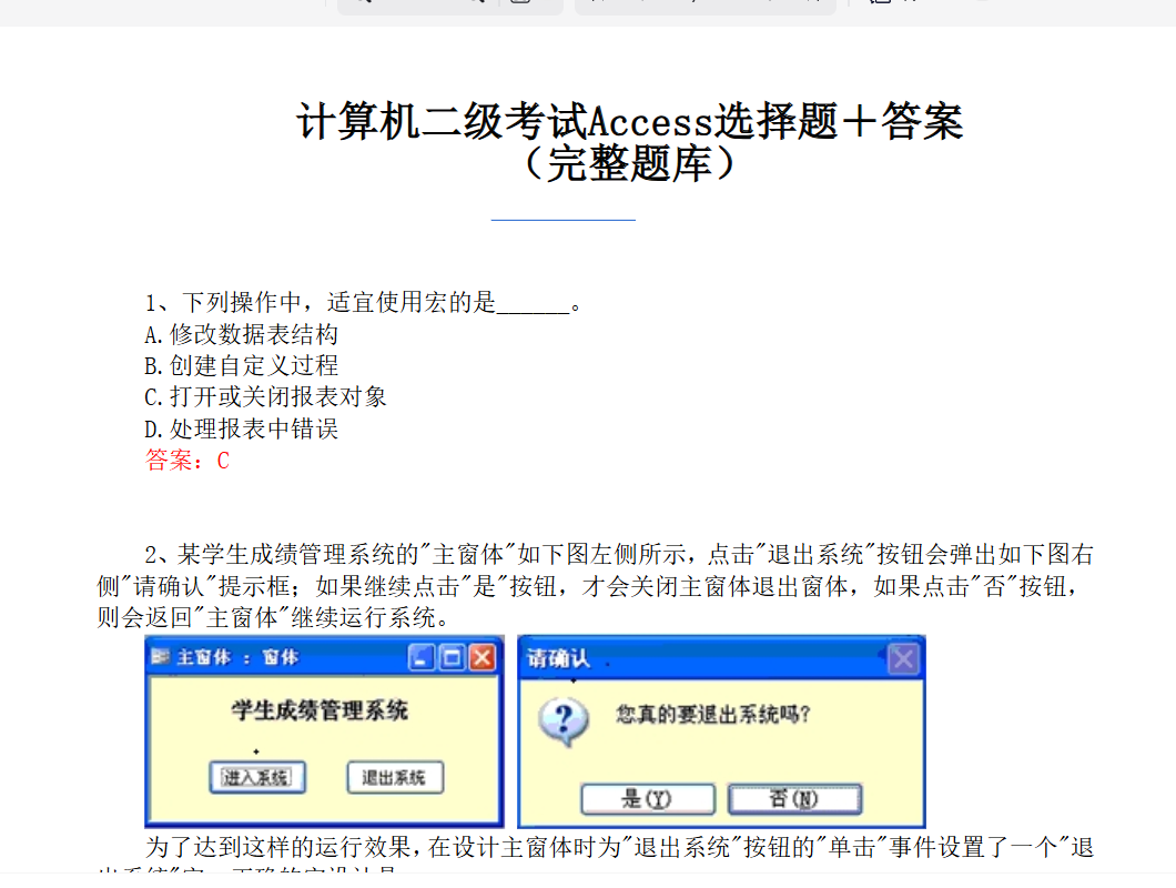 计算机二级考试Access选择题+答案(完整题库) 栏目:学习资料 作者:luka888 时间:2026-01-24 16:31:20 需要考试的小伙伴,抓紧转存。每年考的几乎都是以前的原题,不要错过了链接:https://pan.quark.cn/s/7642071a2c65